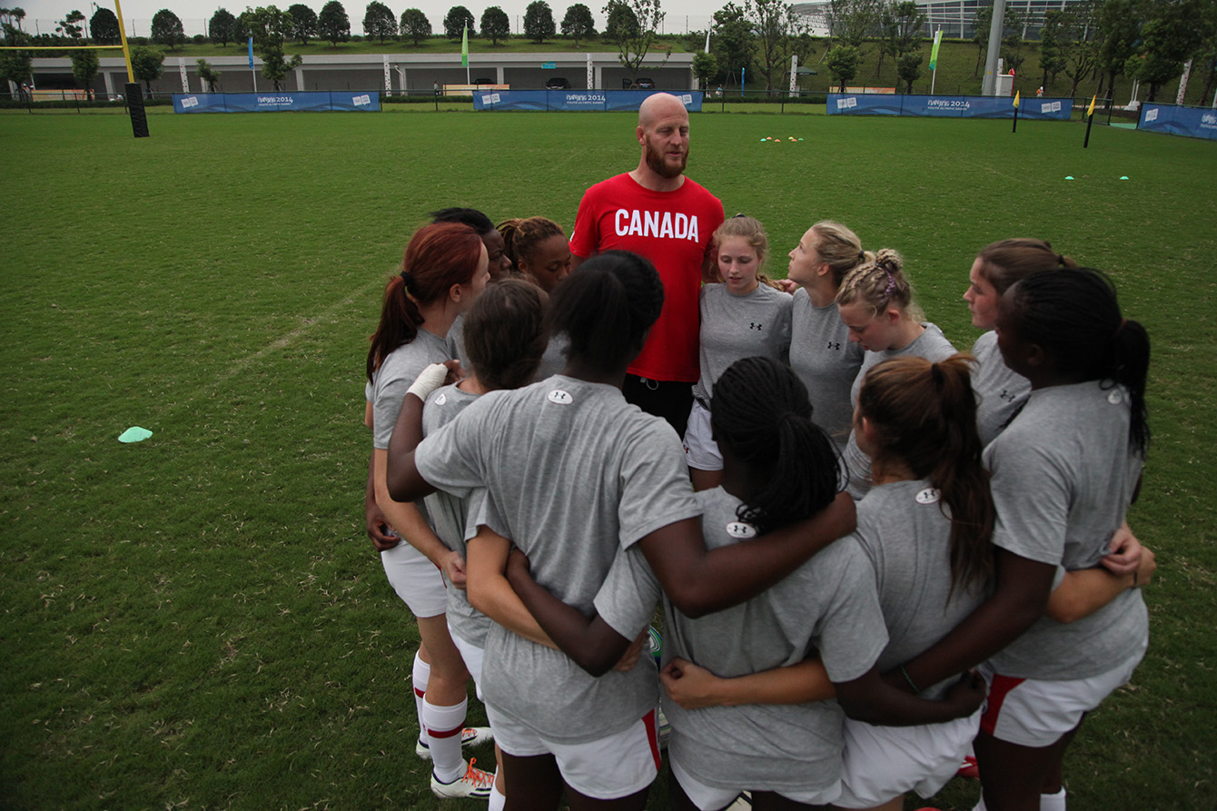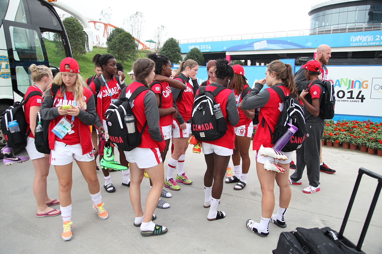 Despite the coordinated urgings of the Chinese supporters, the Canadian team were steady, especially with the game tied at 14 coming out of half time. “The first thing to do at half is just breathe, take deep breaths, relax. I asked them if they were having fun, they said yes, I said ‘well let’s just keep it up’” said coach John Tait. “I couldn’t be prouder. China spent six months together and the girls have really only had 10 full days of prep total in the last six months so this is a great result. It’s definitely an upset.”