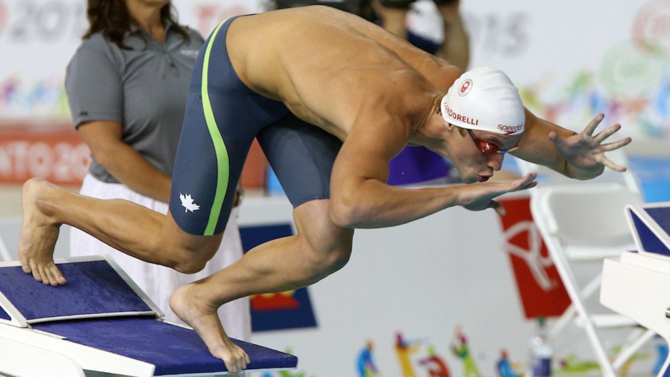 Santo Condorelli during the men’s 100m freestyle at the Pan Am Games. He won four swimming medals at TO2015.