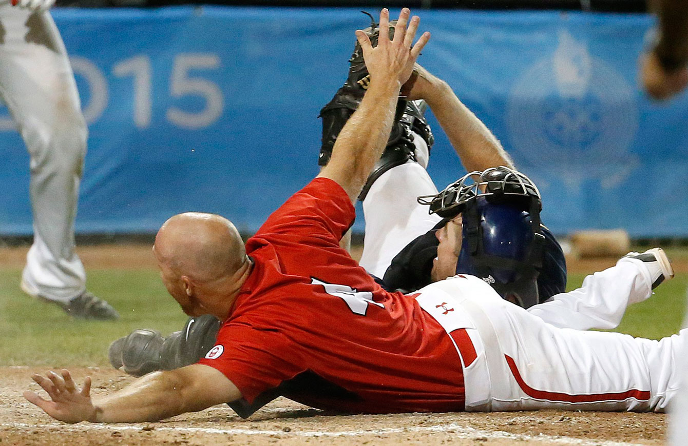 American Tyler Pastronicky hit a two-run double to left field to put the Americans up 6-4 in the top of the tenth, but Canada wouldn’t sit back. They scored one run on a single by Peter Orr (who wears number four) to cut the lead to 6-5 and then took the win with two runs scored on a missed pickoff attempt by American pitcher David Huff. This is likely the first ever walk-off missed pickoff attempt in Pan Am baseball history.
