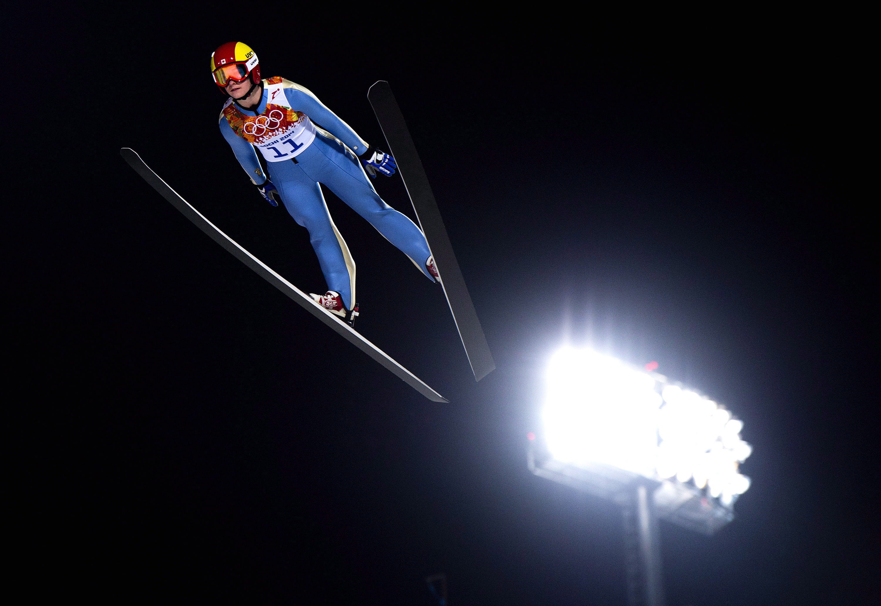 Canada’s Taylor Henrich competes in the women’s individual normal ski jumping event during the 2014 Sochi Winter Olympics in Krasnaya Polyana, Russia on Tuesday, February 11, 2014. THE CANADIAN PRESS/Nathan Denette