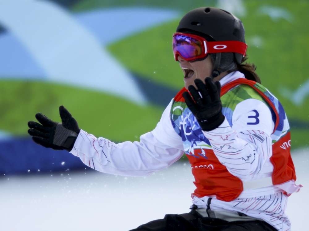 Jasey-Jay Anderson of Canada celebrates his gold medal run at the men’s parallel giant slalom at Cypress Mountain in West Vancouver, B.C., Saturday February 27, 2010, at the 2010 Vancouver Olympic Winter Games. THE CANADIAN PRESS/Sean Kilpatrick
