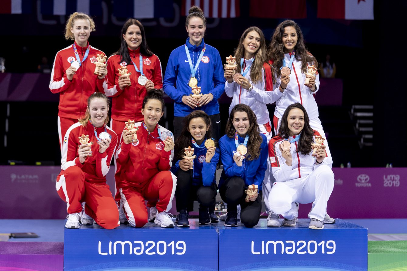 Canada’s women’s foil team of Eleanor Harvey, Jessica Guo, Alanna Goldie and Gabriella Page claimed Team Canada’s first gold in fencing at Lima 2019 and defended their title from Toronto 2015.