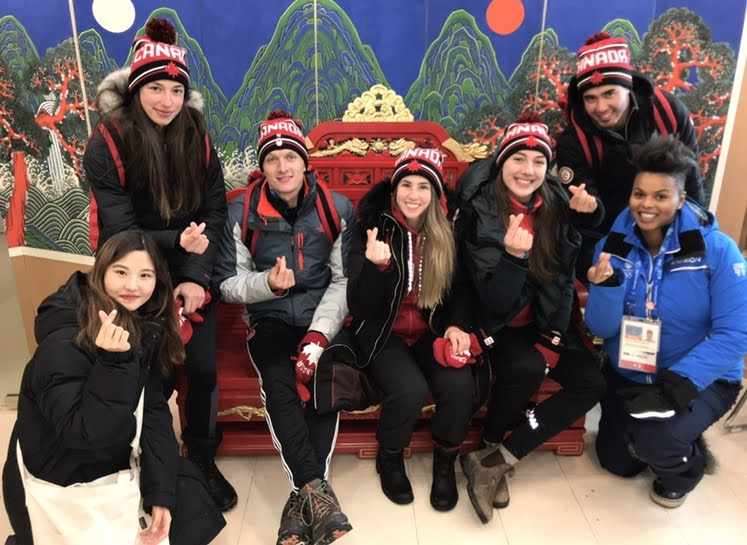 Avalon Wasteneys (third from right) and other RBC Training Ground athletes attend the PyeongChang 2018 Olympic Winter Games.