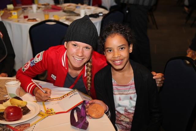 TORONTO – Dans le cadre de la Célébration de l’excellence 2012, des membres des équipes olympique et paralympique canadiennes étaient à Toronto, le jeudi 20 septembre, pour un déjeuner avec des enfants avant de visiter des écoles de la région.
