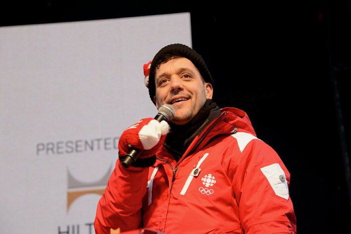 George Stroumboulopoulos, de CBC, animait la Fête de quartier Molson Canadian présentée par Hilton HHonors pour célébrer le départ imminent de l’équipe pour les Jeux olympiques d’hiver à Sotchi en Russie.