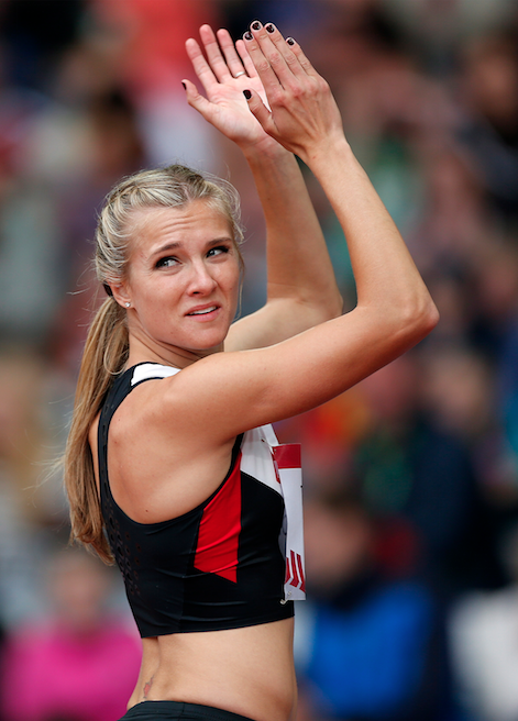 Jessica Zelinka, de l’Ontario, lors des Championnats canadiens d’athlétisme, à Calgary le mercredi 27 juin 2012. THE CANADIAN PRESS/Sean Kilpatrick