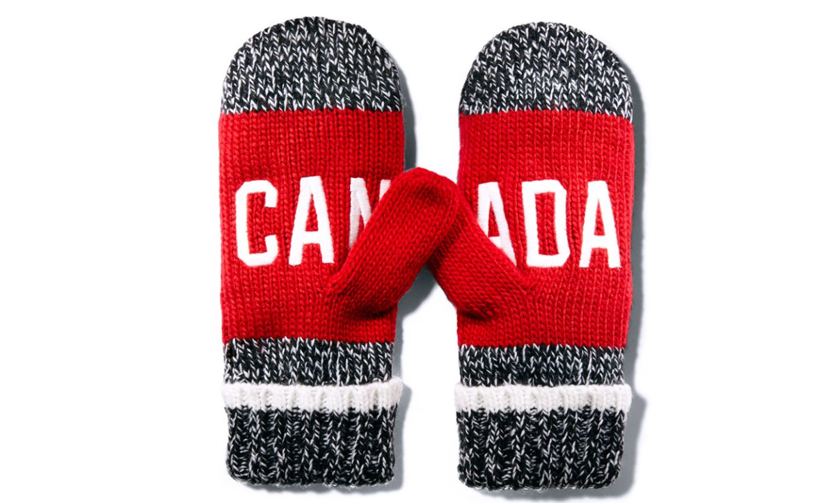 Cette année, la feuille d’érable est une fois de plus mise en évidence sur les mitaines, cette fois brodée en blanc sur le revers de la main (la feuille d’érable était de couleur rouge et se trouvait à l’intérieur l’an dernier). Alors que le noir était dominant sur les mitaines de 2015, le nouveau look pour la version 2016 mise sur des nuances de gris. Le rouge et le blanc demeurent bien présents et les lettres brodées à l’intérieur épellent « CANADA ». Les mitaines sont offertes en taille adulte, enfant et bébé dans tous les magasins de La Baie d’Hudson ainsi qu’en ligne. (Livraison au Canada seulement)