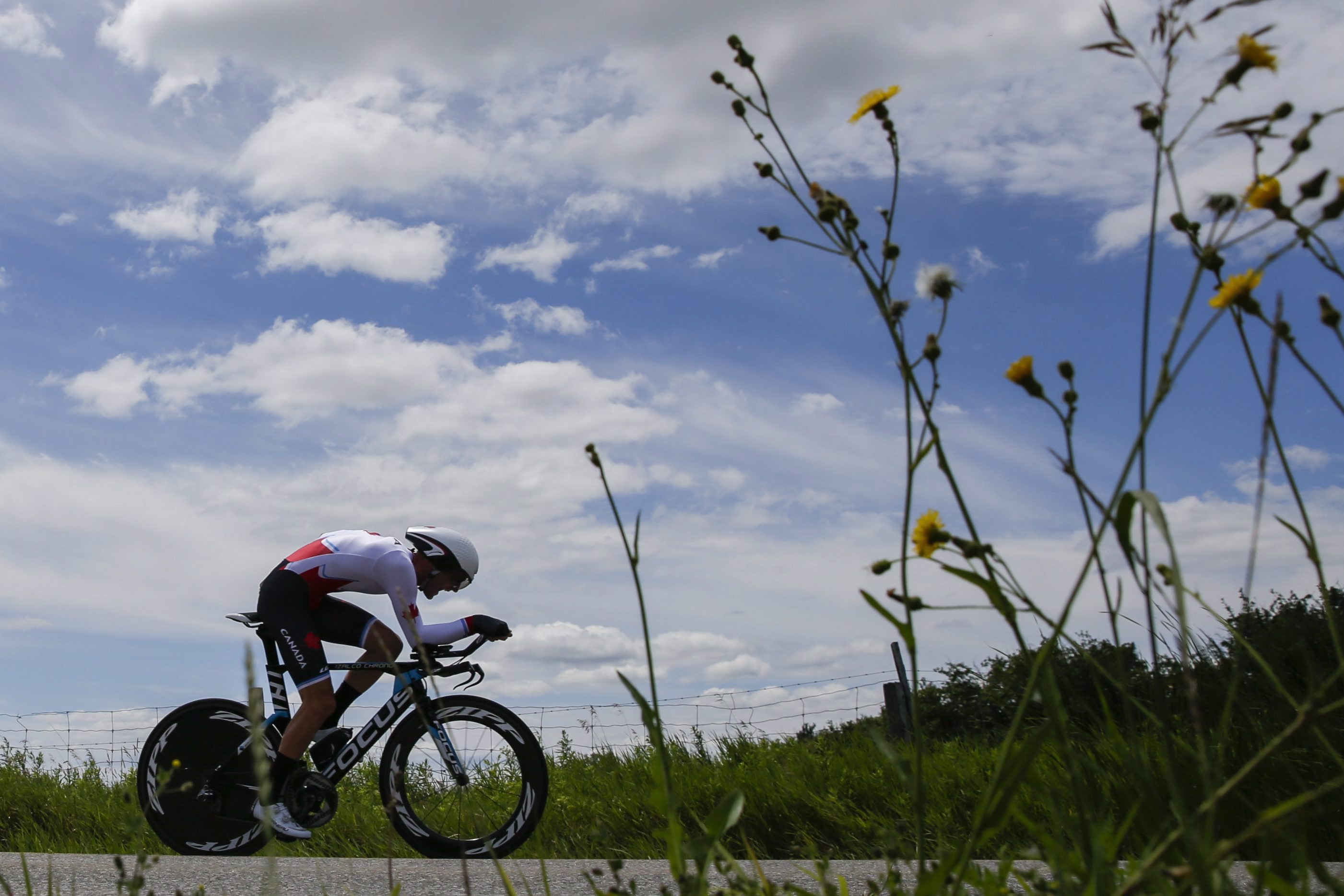 Hugo Houle en route vers sa médaille d’or au contre-la-montre aux Jeux panaméricains de 2015 à Toronto. THE CANADIAN PRESS/Darren Calabrese