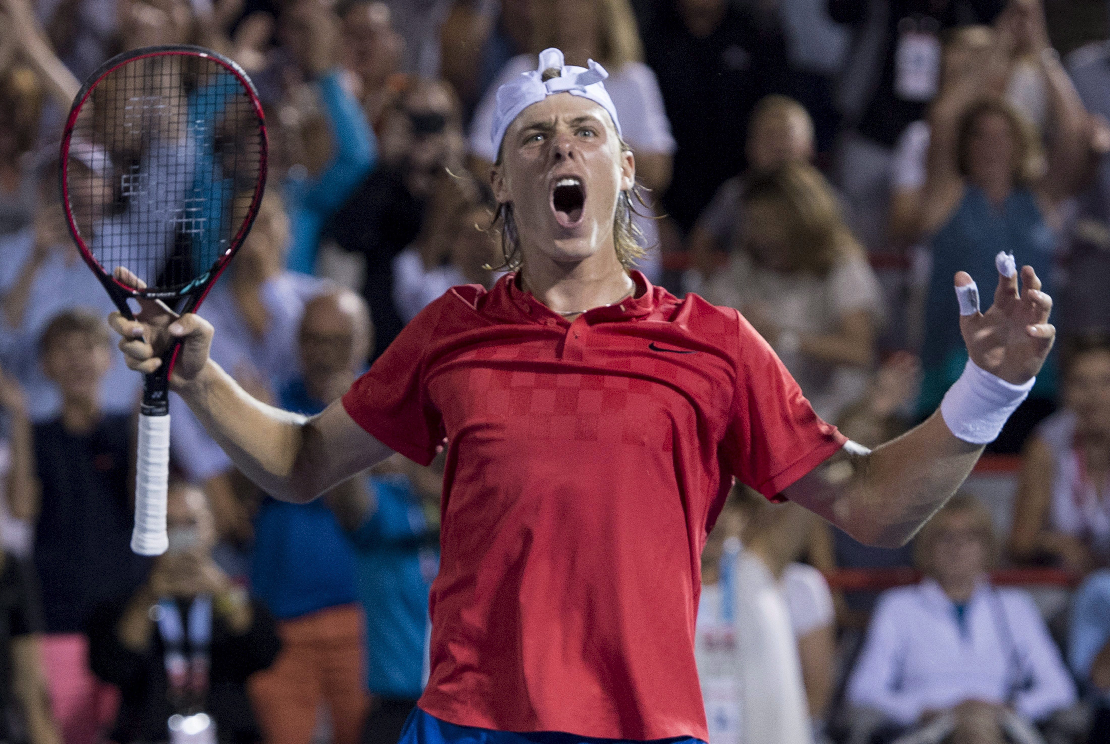 Denis Shapovalov célèbre sa victoire face à Adrian Mannarino lors des quarts de finale de la Coupe Rogers à Montréal, le 11 août 2017.