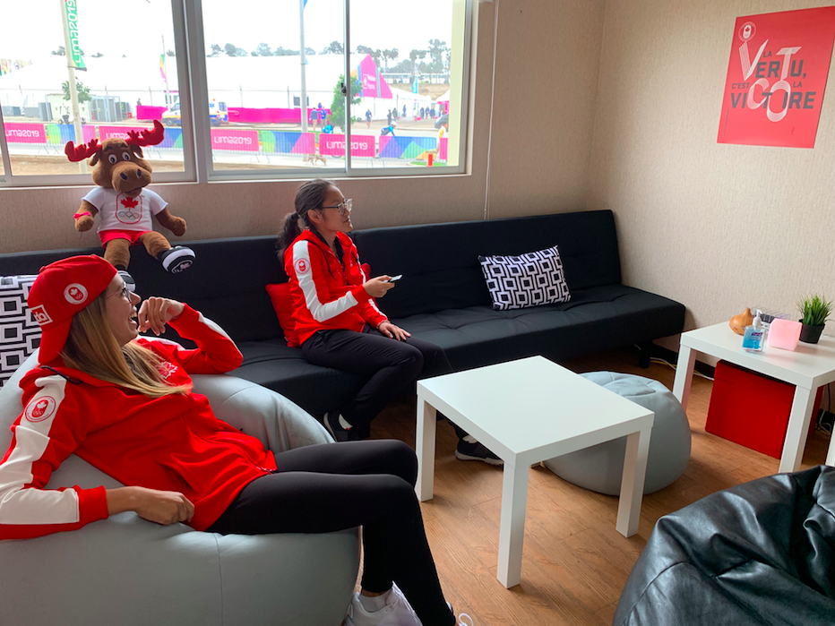 La tour d’appartements où habite Équipe Canada compte plusieurs lieux communs où les athlètes de toutes disciplines peuvent relaxer, jaser, boire leur smoothie protéiné ou même jouer aux jeux vidéos pour pratiquer leurs aptitudes en e-sports.