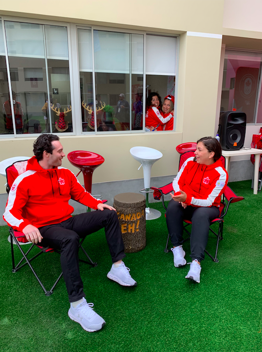La tradition veut que chaque pays identifie ses quartiers généraux avec des drapeaux et enseignes de toutes sortes, presque à la façon d’une fraternité universitaire! Équipe Canada ne passe évidemment pas inaperçue, avec son espace « feu de camp » où on peut littéralement se tirer une bûche et jaser avec des collègues athlètes.