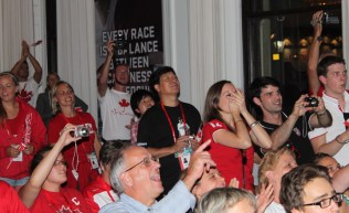La flamme olympique passe devant la Maison olympique du Canada