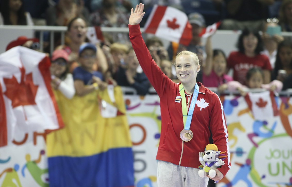 Jour 5 – Toronto 2015 17 juillet 2015 Par Vanessa Fernandes Robert Gibson – Rameur individuel hommes (aviron) Quatre poids léger hommes (aviron) Quatre poids léger hommes (aviron) Huit hommes (aviron) Julien Bahain, Martin Barakso, Will Crothers, Will Dean, Mike Evans, Jacob Koudys, Kai Langerfield, Conlin McCabe, Tim Schrijver Julien Bahain, Martin Barakso, Will Crothers, Will Dean, Mike Evans, Jacob Koudys, Kai Langerfield, Conlin McCabe, Tim Schrijver Huit hommes (aviron) Victoria Woo – gymnastique artistique (poutre). Photo par Mike Ridewood Ellie Black et Victoria Woo – gymnastique artistique (poutre). Photo par Mike Ridewood Ellie Black – gymnastique artistique (exercice au sol). Photo par Mike Ridewood Ellie Black – gymnastique artistique (exercice au sol). Photo par Mike Ridewood Kevin Lytwyn – gymnastique artistique (barre fixe). Photo par Mike Ridewood Kevin Lytwyn – gymnastique artistique (barre fixe). Photo par Mike Ridewood George Kobaladze – haltérophilie. Photo par Winston Chow George Kobaladze – haltérophilie. Photo par Winston Chow Richard Funk – 200 m brasse Richard Funk – 200 m brasse Relais 4×200 m Relais 4×200 m Emily Overholt – 200 m libre Kierra Smith – 200 m brasse Dominique Bouchard – 200 m dos Dominique Bouchard et Hilary Caldwell – 200 m dos Philip Bester et Gabriela Dabrowski (tennis – double mixte) Tennis – double mixte Water-polo – Hommes. Photo par Michael P. Hall L’équipe de poloïstes canadiens aux Jeux panaméricains de 2015 à Toronto. Photo par Michael P. Hall