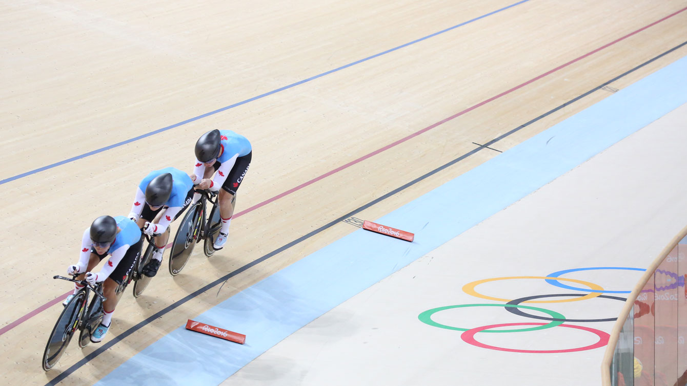 L’équipe de poursuite féminine qui a remporté la médaille de bronze le 13 août 2016, à Rio. COC Mark Blinch