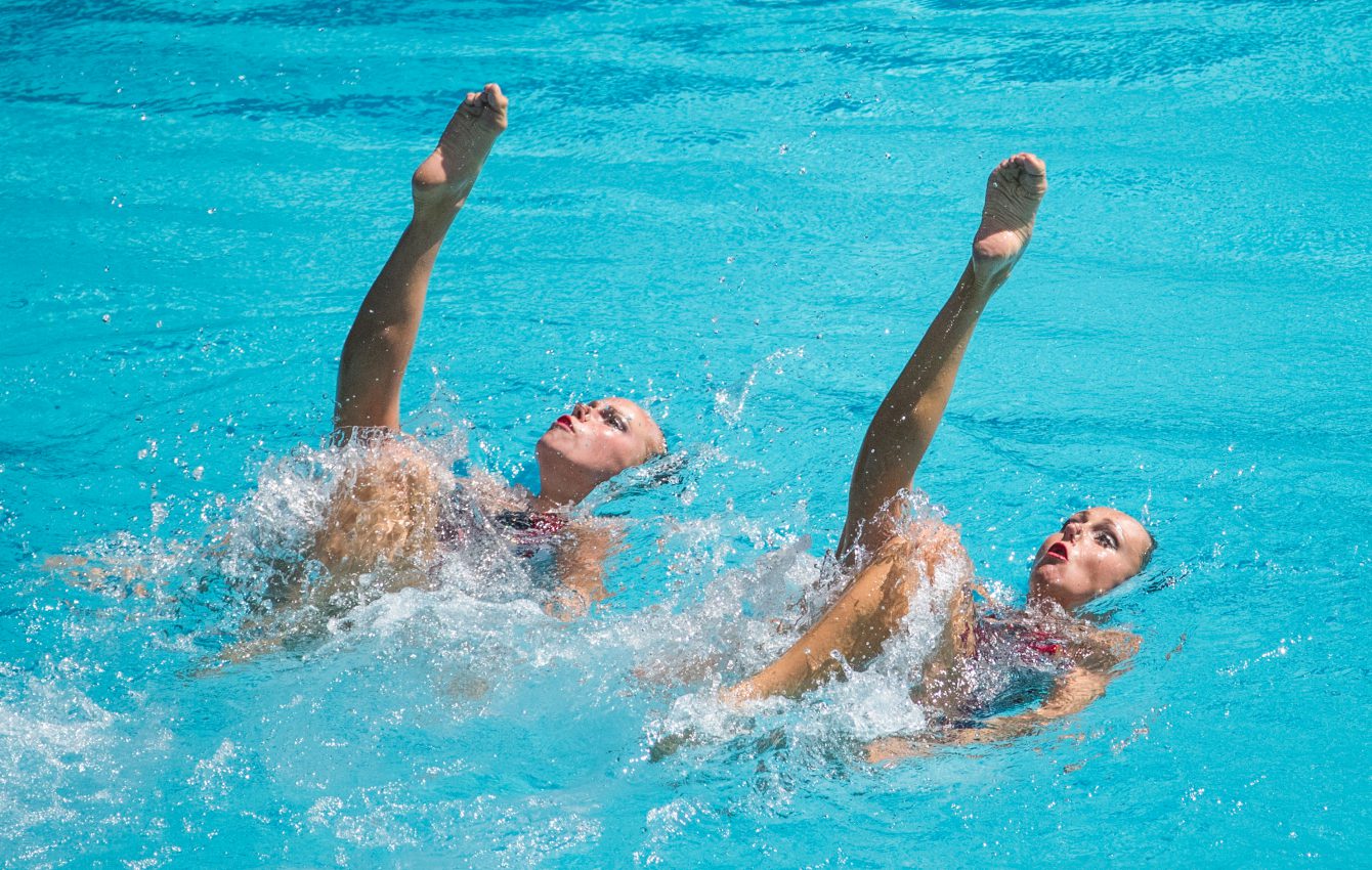 Jacqueline Simoneau et Karine Thomas lors de leur routine libre en nage synchronisée aux Jeux olympiques de 2016, à Rio. Photo du COC/Mark Blinch